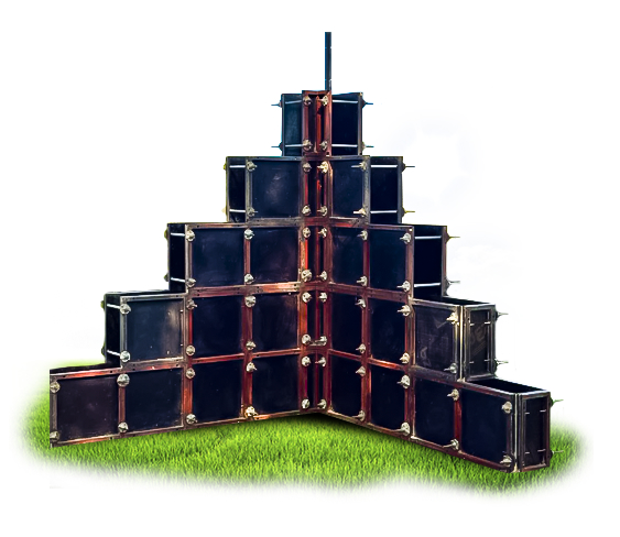 Мелкощитовая опалубка — разновидность опалубки, которая используется для качественного возведения фундамента, стен, колонн и прочих элементов сооружения по технологии монолитного строительства при высхоких нагрузках. Опалубка состоит из щитов усиленного металлического каркаса профильной трубы 40х40х2 мм и ламинированной фанеры 21 мм.